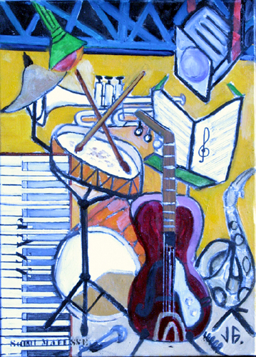 Triste année que celle de 2021. Le confinement offre l’avantage de laisser plus de temps pour peindre. Il y a quelques traits d’humour, comme dans "chacun son tour et le Mondrian"mais aussi le matisse sur le thàme du jazz.